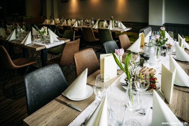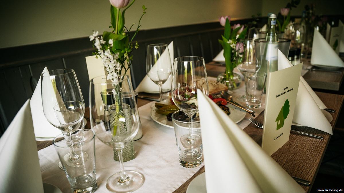 Feste feiern in der Laube! Bei einer Anzahl von 50 bis 70 Personen können Sie die Laube komplett für Ihre Veranstaltung reservieren. Sollten weniger Personen erwartet werden, ist es auch möglich, einen Teil des Gastraumes oder den Thekenbereich nur für Sie zu reservieren.